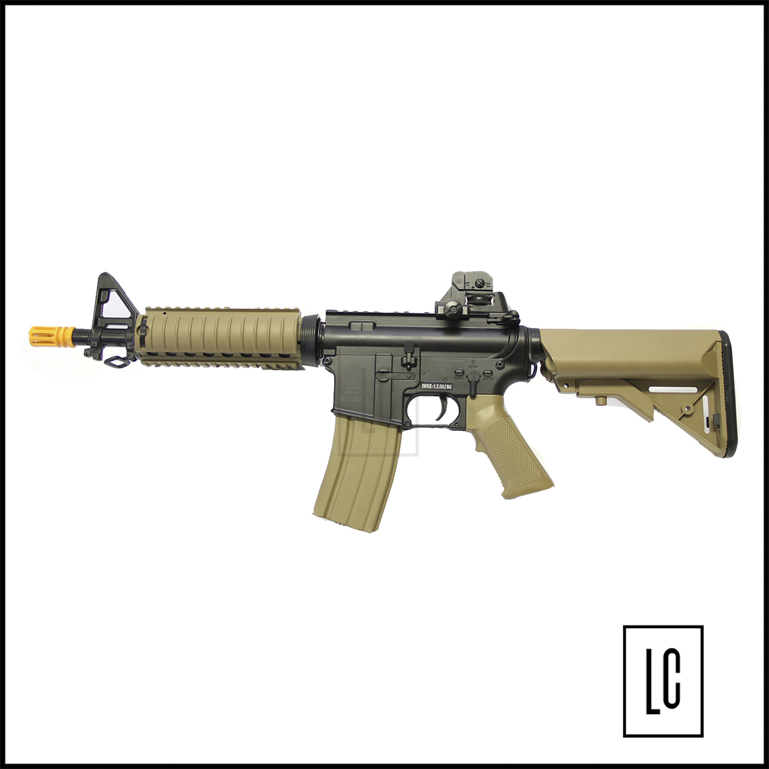 RIFLE DE AIRSOFT COLT M4A1 CQBR de calibre 6mm é fabricado pela Cybergun. Este fuzil foi desenhado com base no Colt M4 CQB conhecida em todo mundo, por ser utilizado no exército americano. Sua versão de Airsoft possui mira regulável, coronha retrátil, alças para adaptação de bandoleira, sistema de disparo automatico e full automatico, sendo modelo com Hop-UP ajustavel, é conhecido por possui trilhos frontais de 22mm e com protetor de RIS.