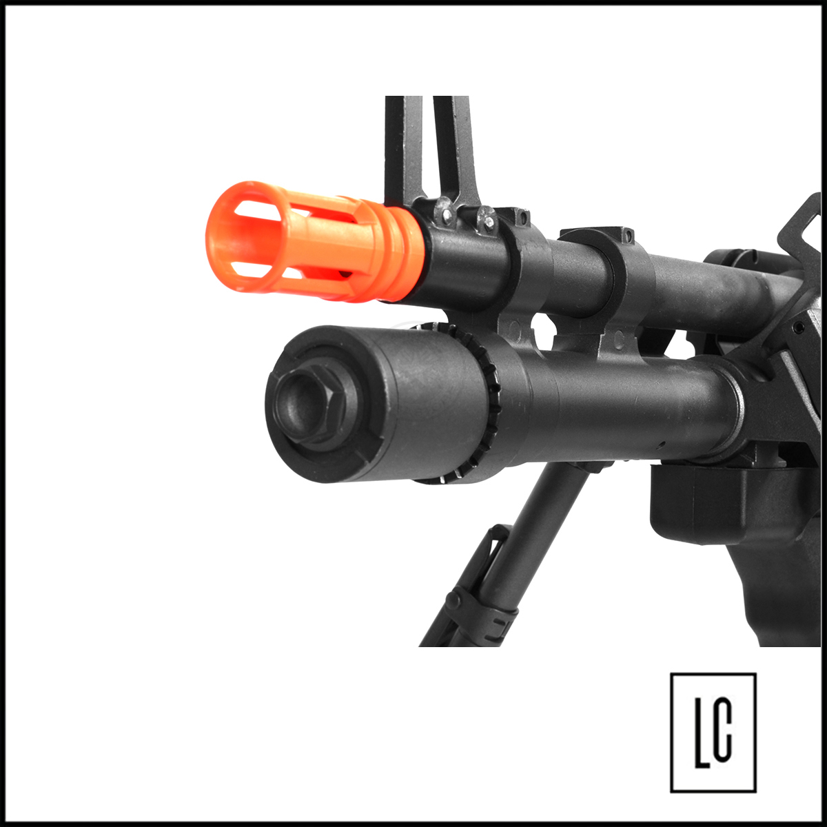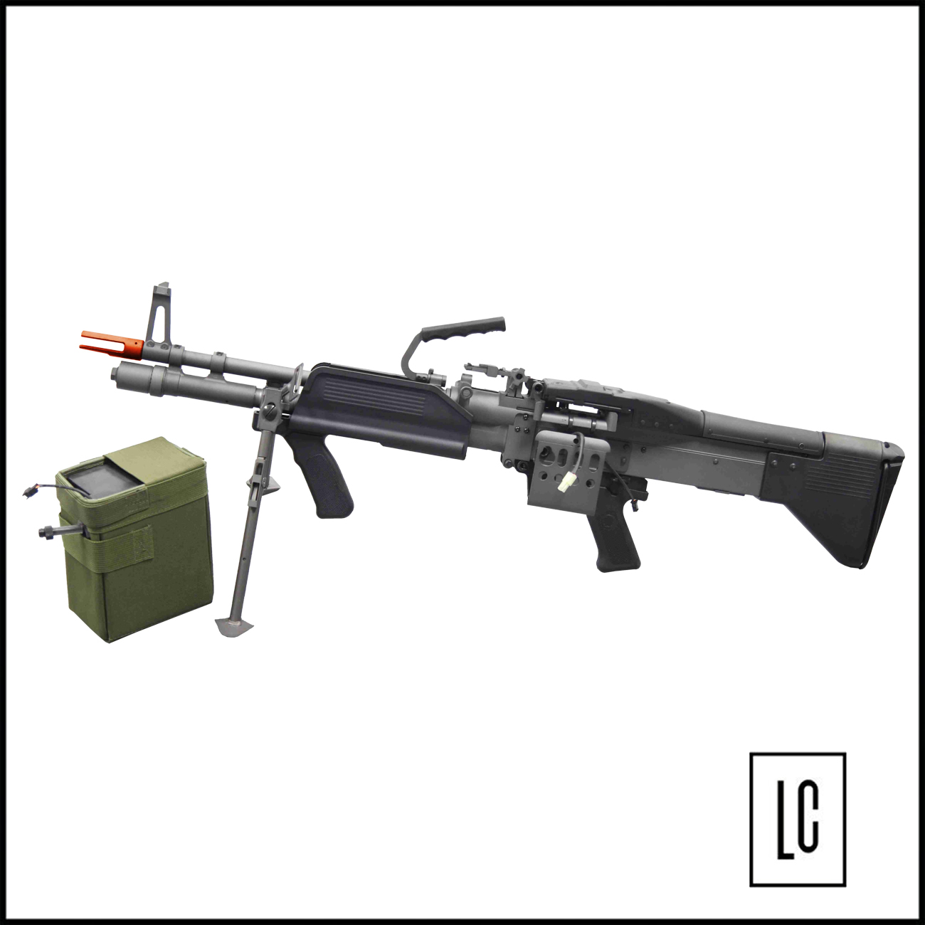 RIFLE DE AIRSOFT MK43 é um modelo em full metal desenvolvido pela A&K. Possui coronha fixa, possui mira regulável, alças para adaptação de bandoleira, pega mão, sistema de disparo automático e trava de segurança, sistema de Hop-Up ajustável BAXS System, modelo já acompanha drum e se destaca pela alta cadência no disparo, permitindo uma sequencia maior.