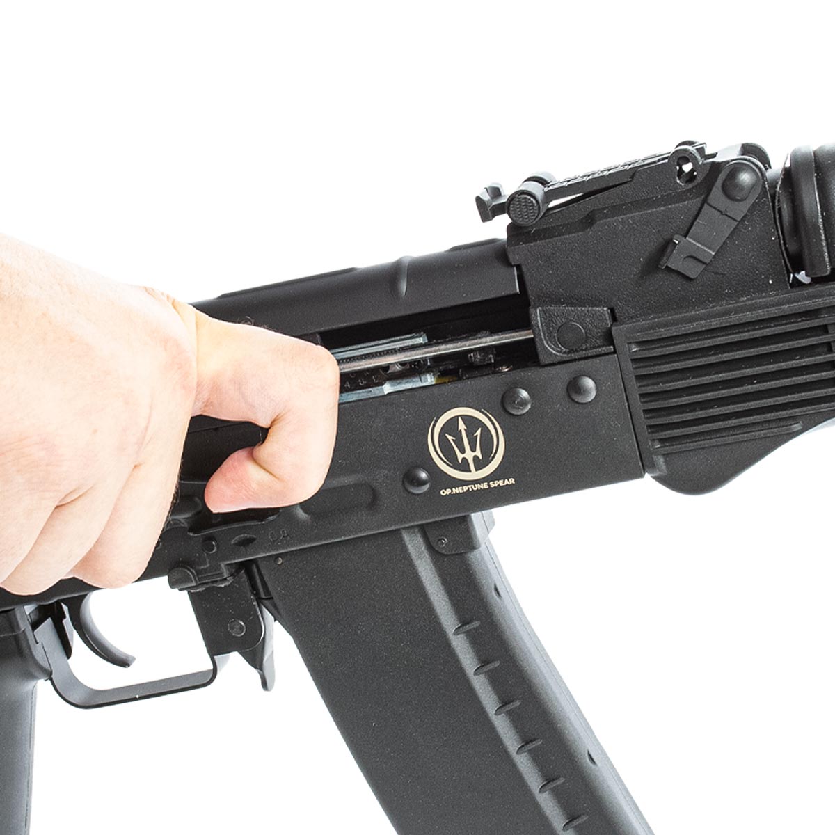 A AK74 Conta com um desin tático e robusto confeccionado em polímero com partes em metal.