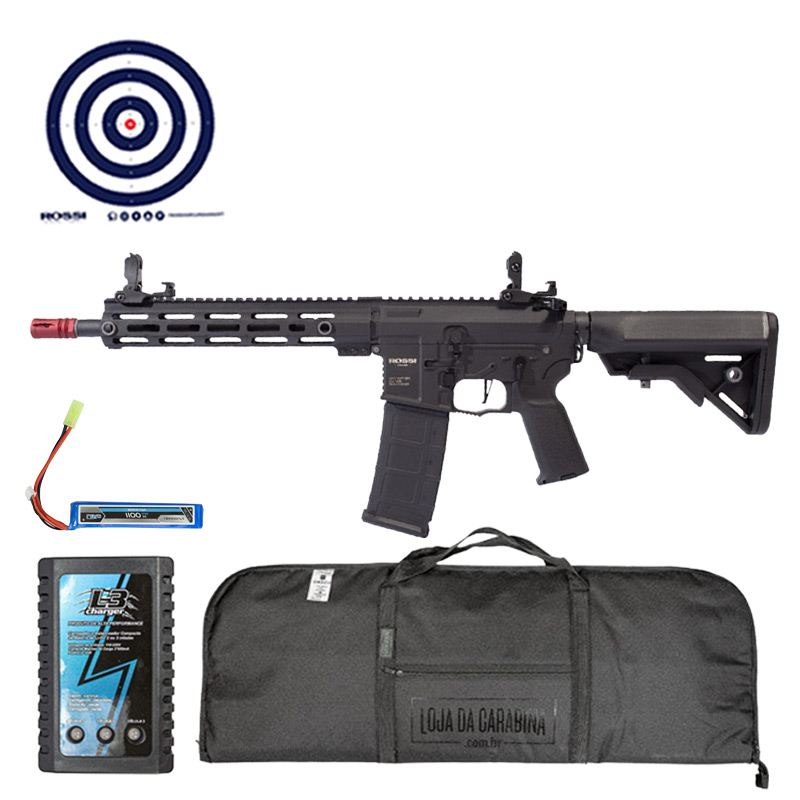 AIRSOFT NEPTUNE 10 PLUS AR15 ROSSI + CAPA LC + CARREGADOR PARA BATERIA + BATERIA + BBS 0.25 + ALVOS