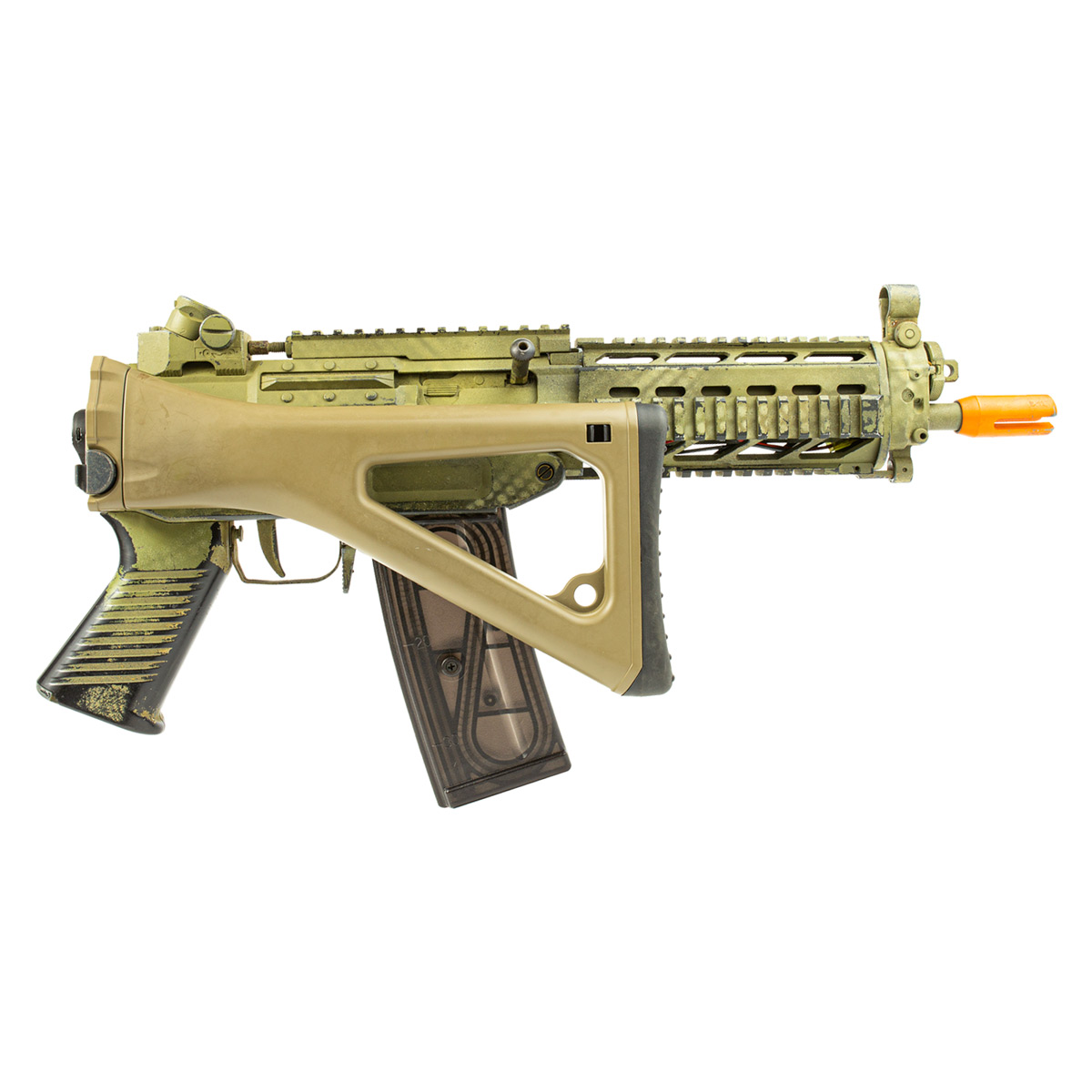 RIFLE DE AIRSOFT SIG SAUER 552 é um modelo de rifle de assalto. Possui coronha rebativel onde é possível ajustar o comprimento do equipamento para melhor ajuste do atirador. Possui mira regulável, alças para adaptação de bandoleira, sistema de disparo automático, semi-automático e trava de segurança, sistema de Hop-Up ajustável BAXS System e sistema com trilhos no handguard, front grip e magazine extras.