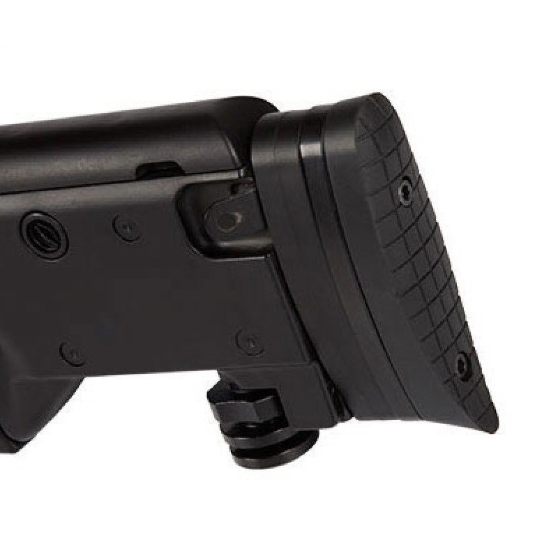 Contém na parte traseira da coronha um apoio / estabilizador retrátil que se estende em diversos tamanhos até 9cm, auxiliando em disparos mais precisos.