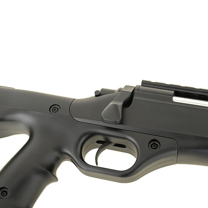 Outro diferencial é o Sistema de Hop-Up ajustável, que pode ser acessado por uma pequena alavanca na lateral do cano, o que te permite ajustar o eixo vertical do disparo, pra atingir alvos mais distantes. O magazine dessa Arma de Pressão tem capacidade para 30 BB's, importantíssimo para um Sniper.