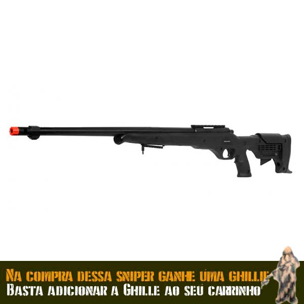 Pensando no total conforto do atirador, essa Sniper também tem ajuste de elevação para apoio de tiro, podendo ser ajustado em diferentes comprimentos.