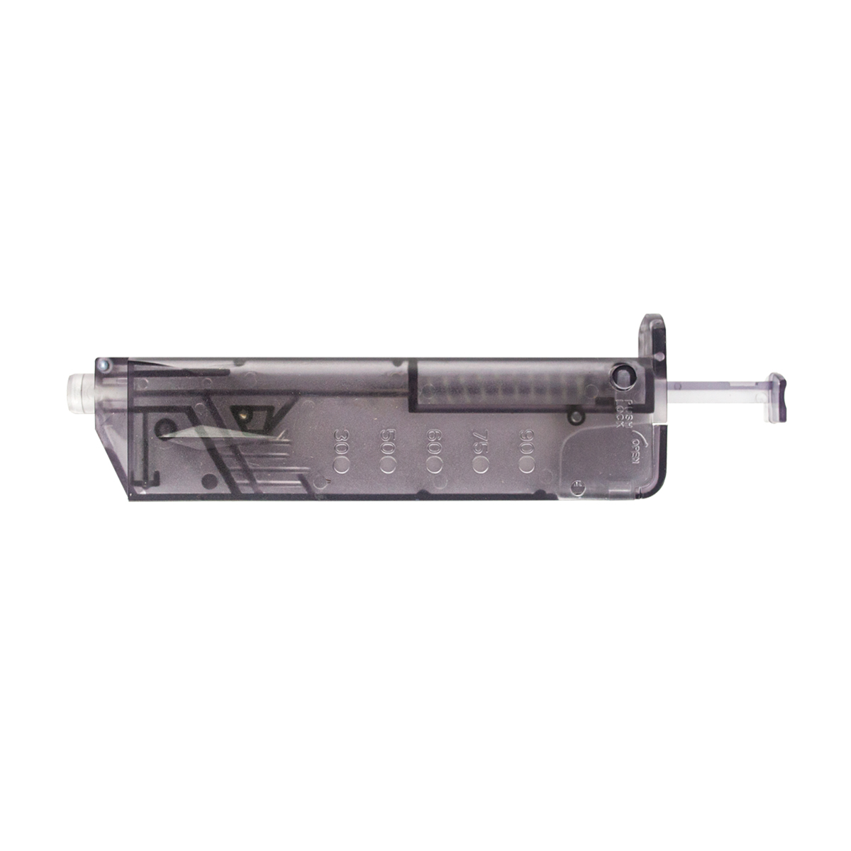 O magazine dessa Sniper Spring Jing Gong é em polímero e tem capacidade para até 30 BBS. Para facilitar a recarga do magazine, acompanha na caixa um speedloader, tornando as recargas bem mais rápidas e com maior praticidade.