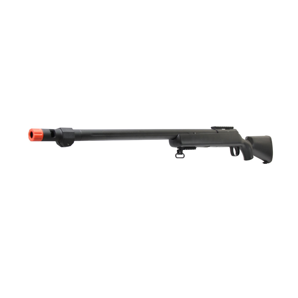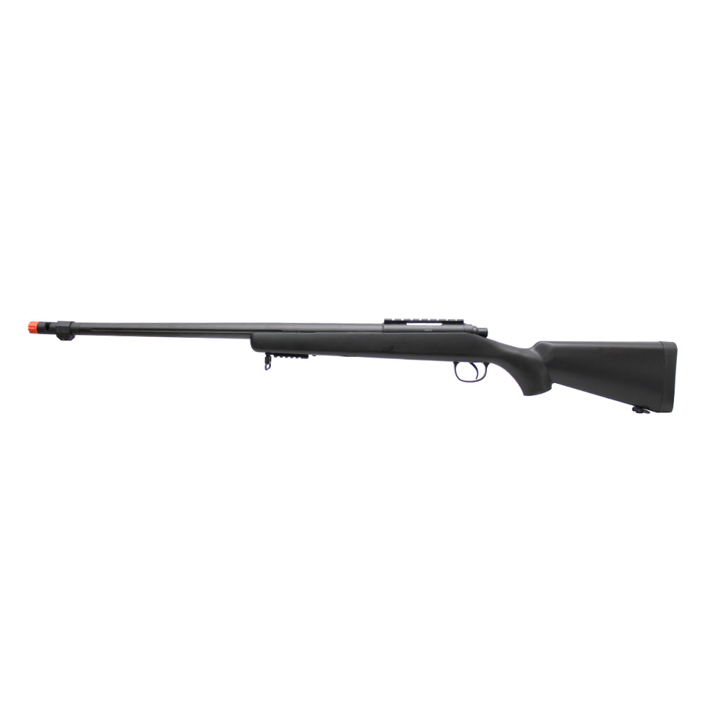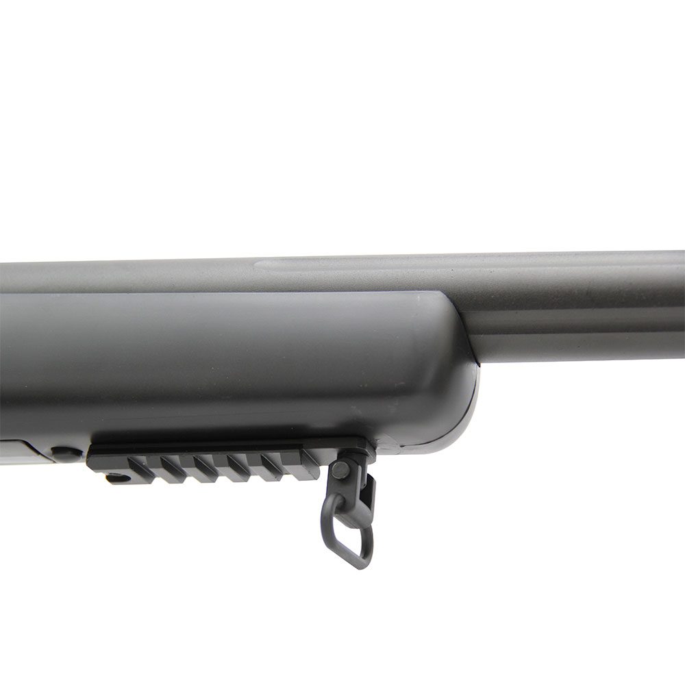 Rifle Airsoft Sniper Well MB07A com acionamento por mola (Spring). Engatilhamento por ferrolho lateral.