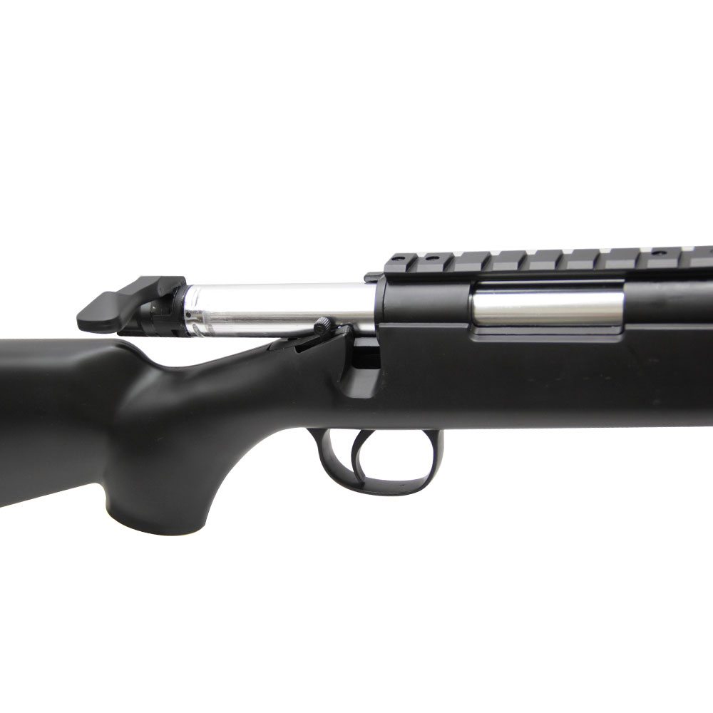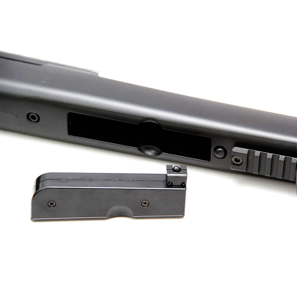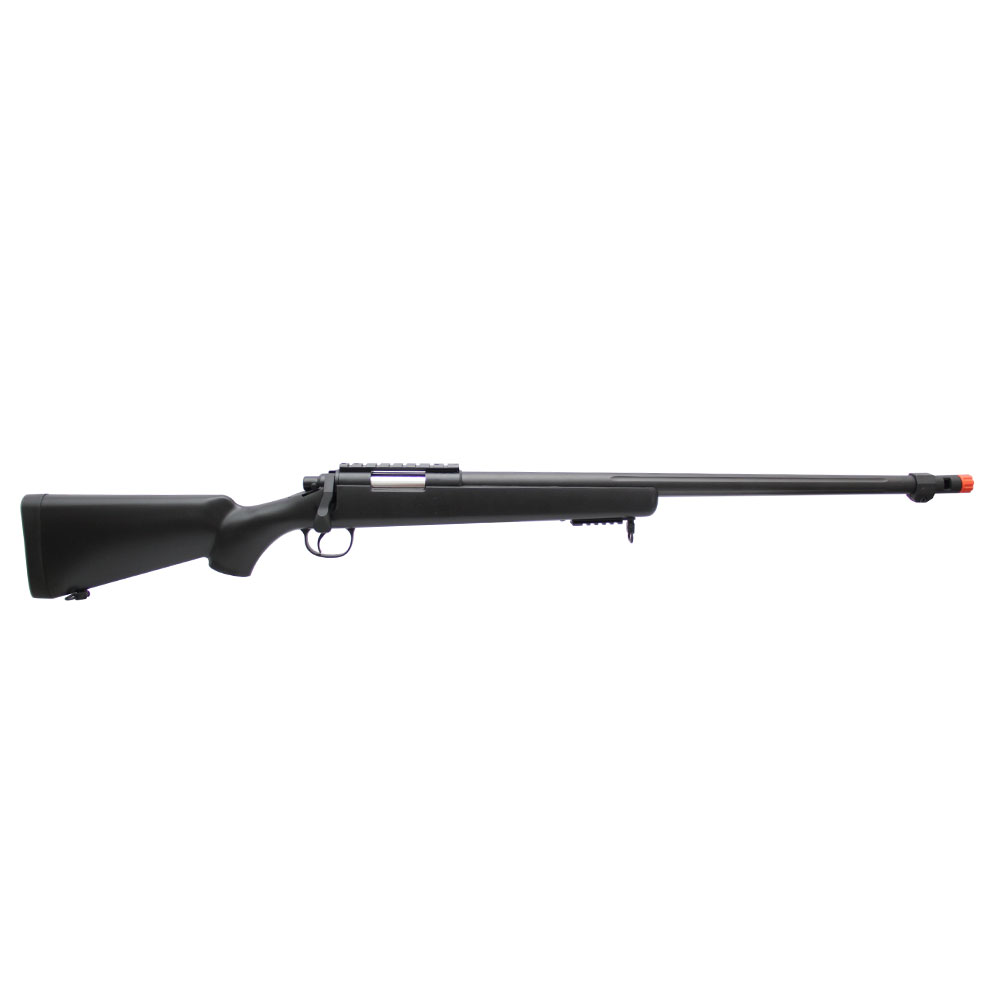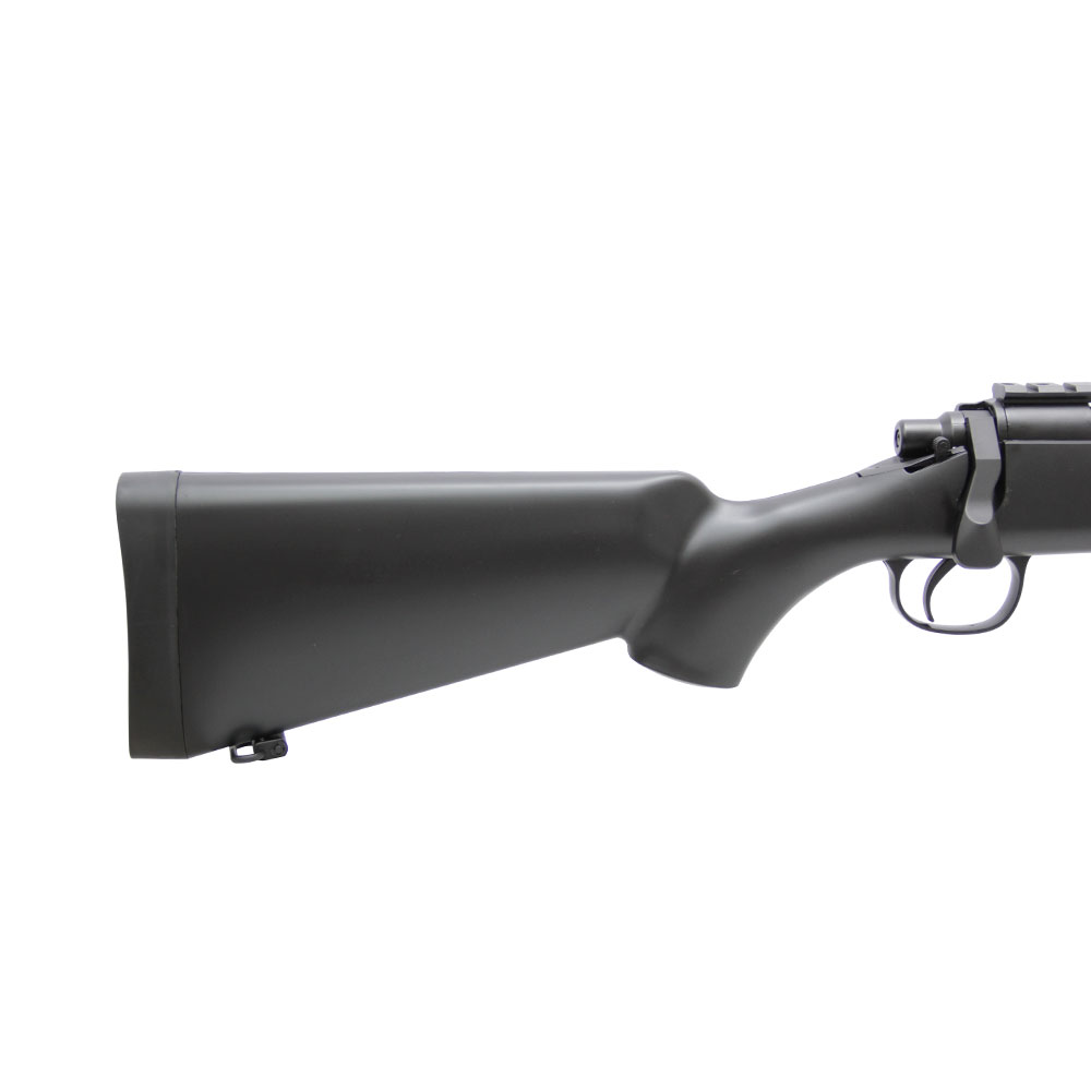 Rifle Airsoft Sniper Well MB07A com acionamento por mola (Spring). Engatilhamento por ferrolho lateral.