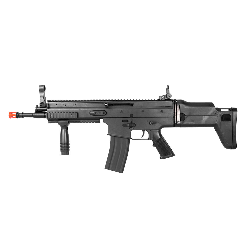 Rifle Airsoft Scar L, construído em polímero é um rifle Spring, o que significa que ele é alimentado por uma mola dentro do rifle, e deve ser armado antes que cada tiro funcione.