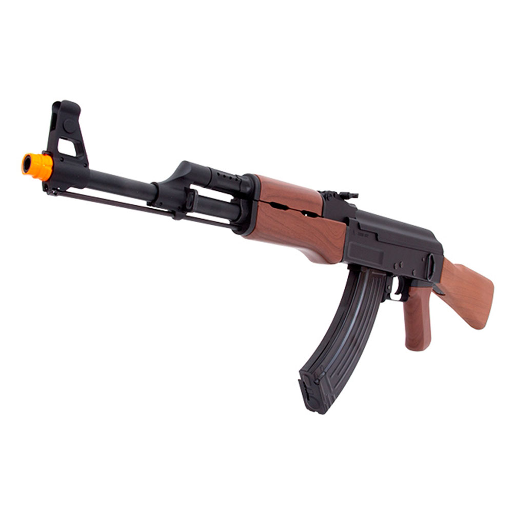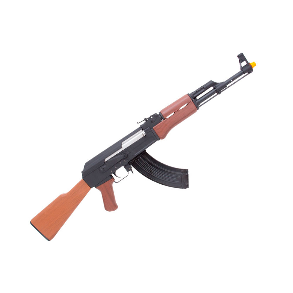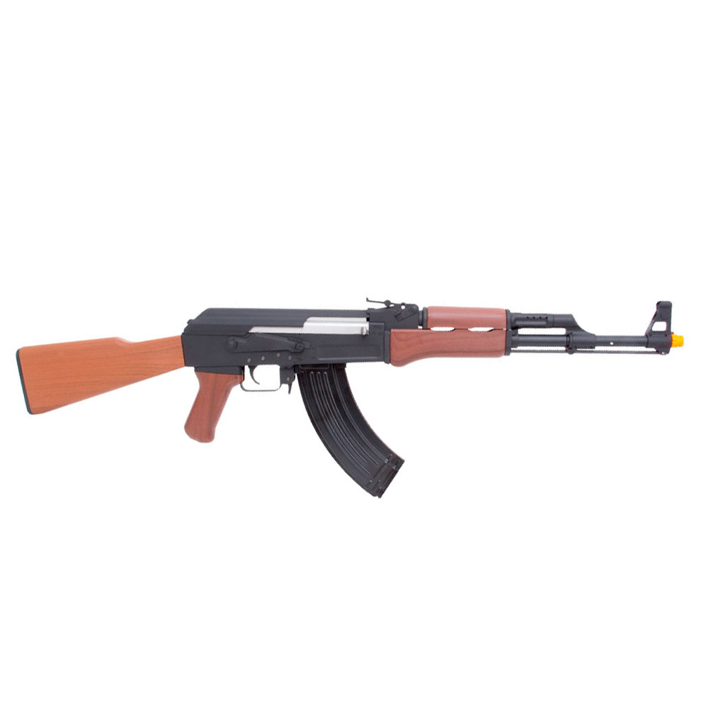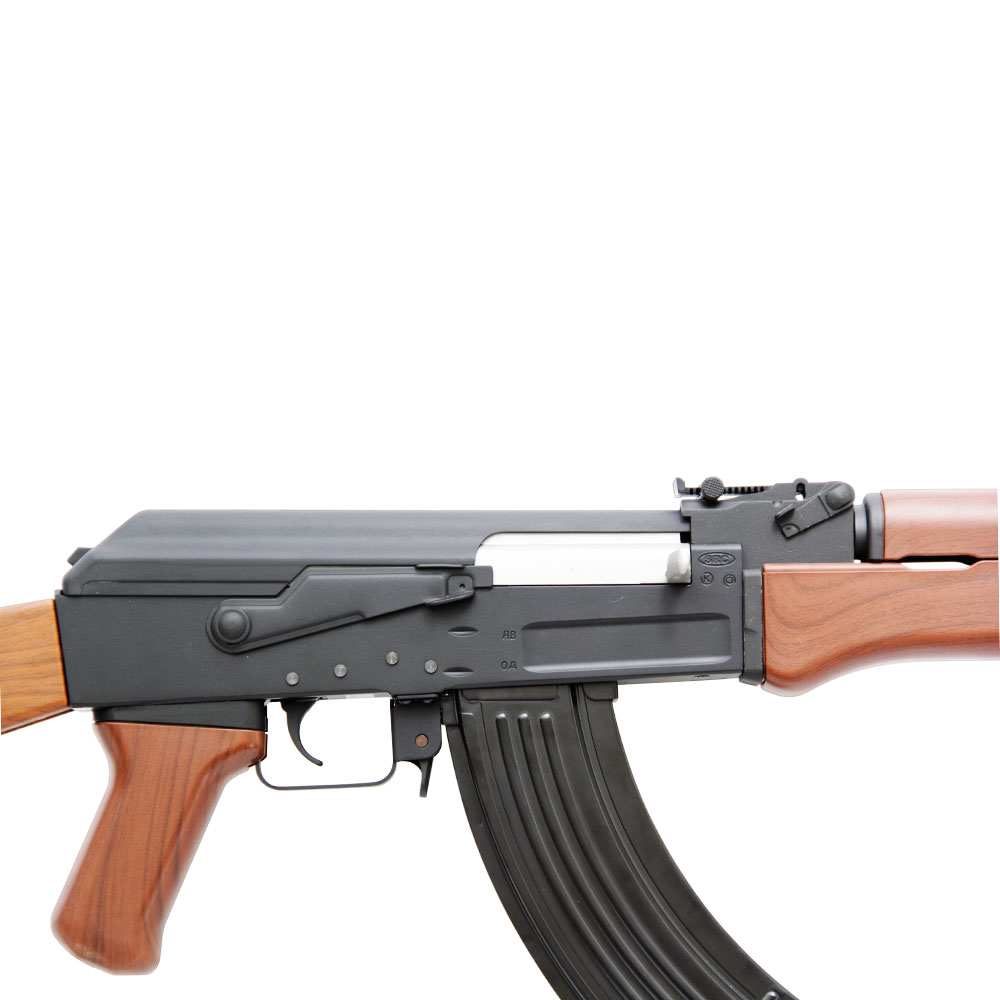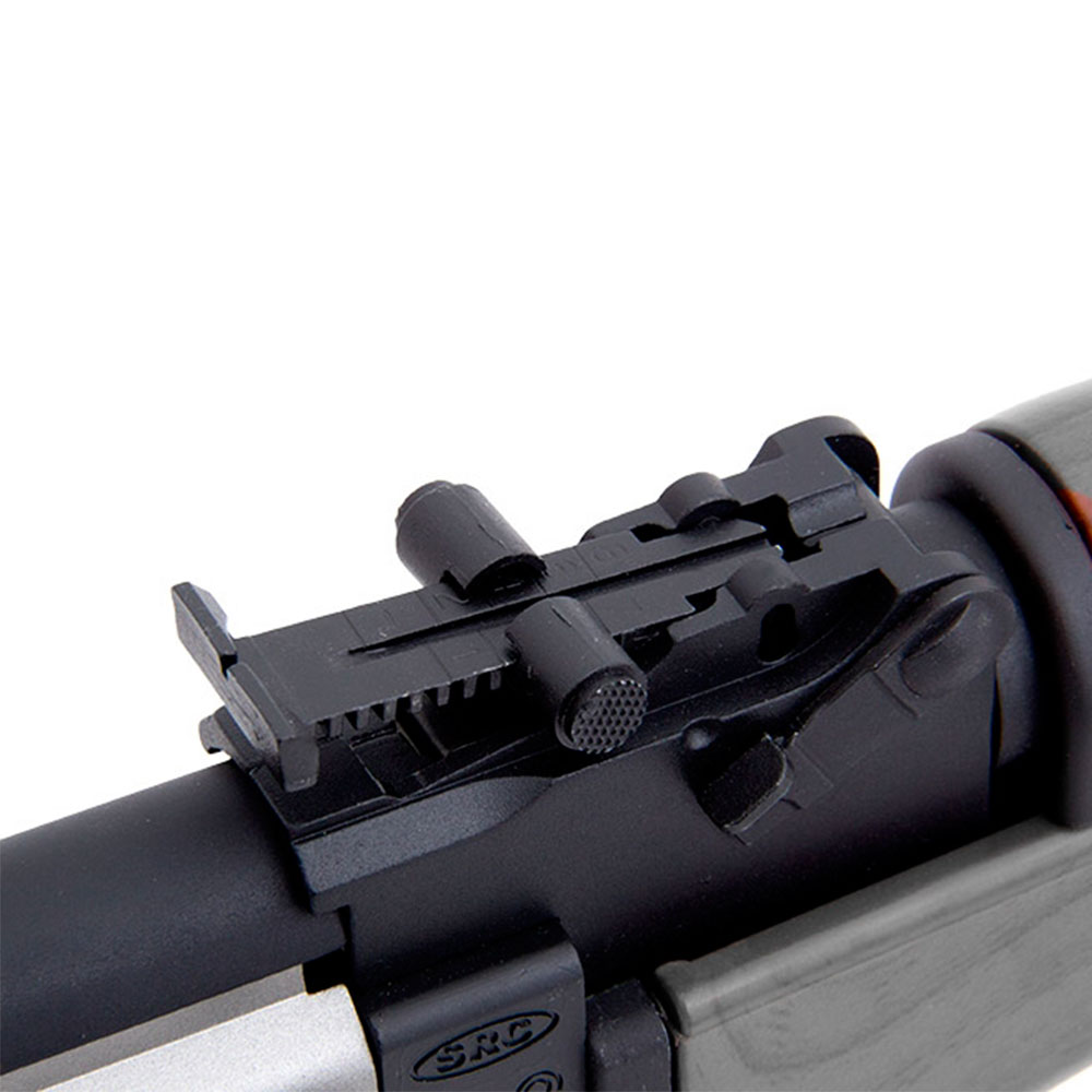 Rifle Elétrico SRC SR-47 construído em metal, com somente coronha, handguard e handgrip em polímero de alta resistência. Uma réplica do rifle AK-47, Kalashnikov criado em 1947 por Mikhail Kalashnikov e produzido na União Soviética pela IZH.
