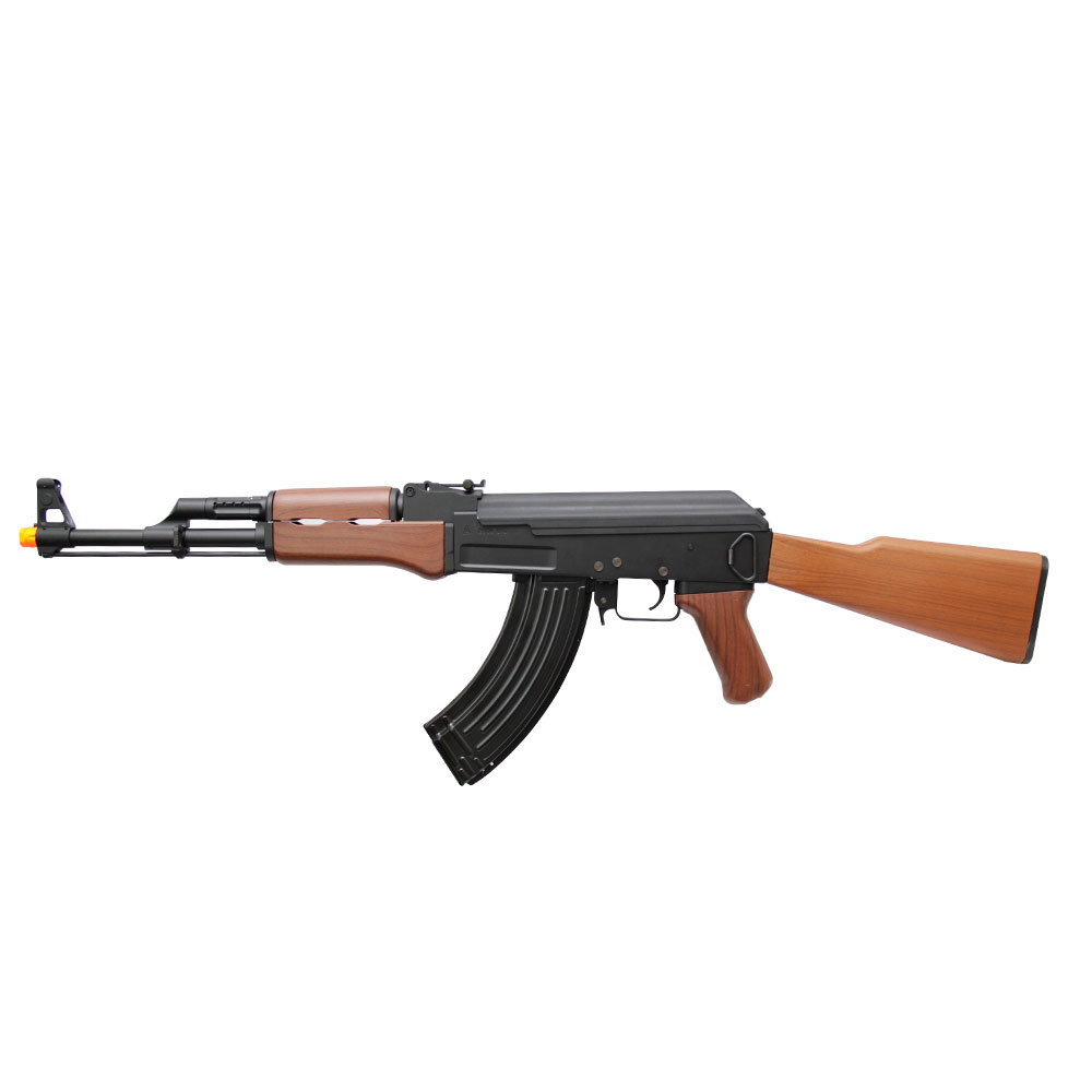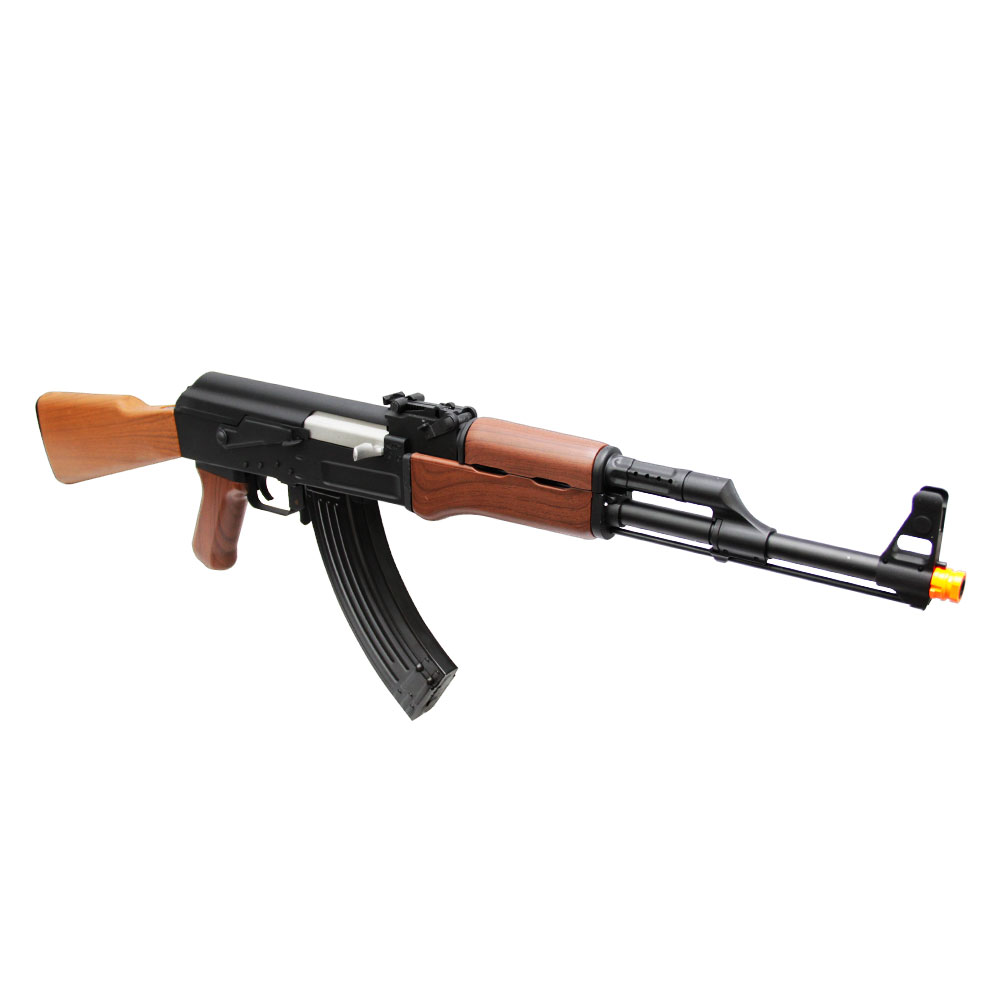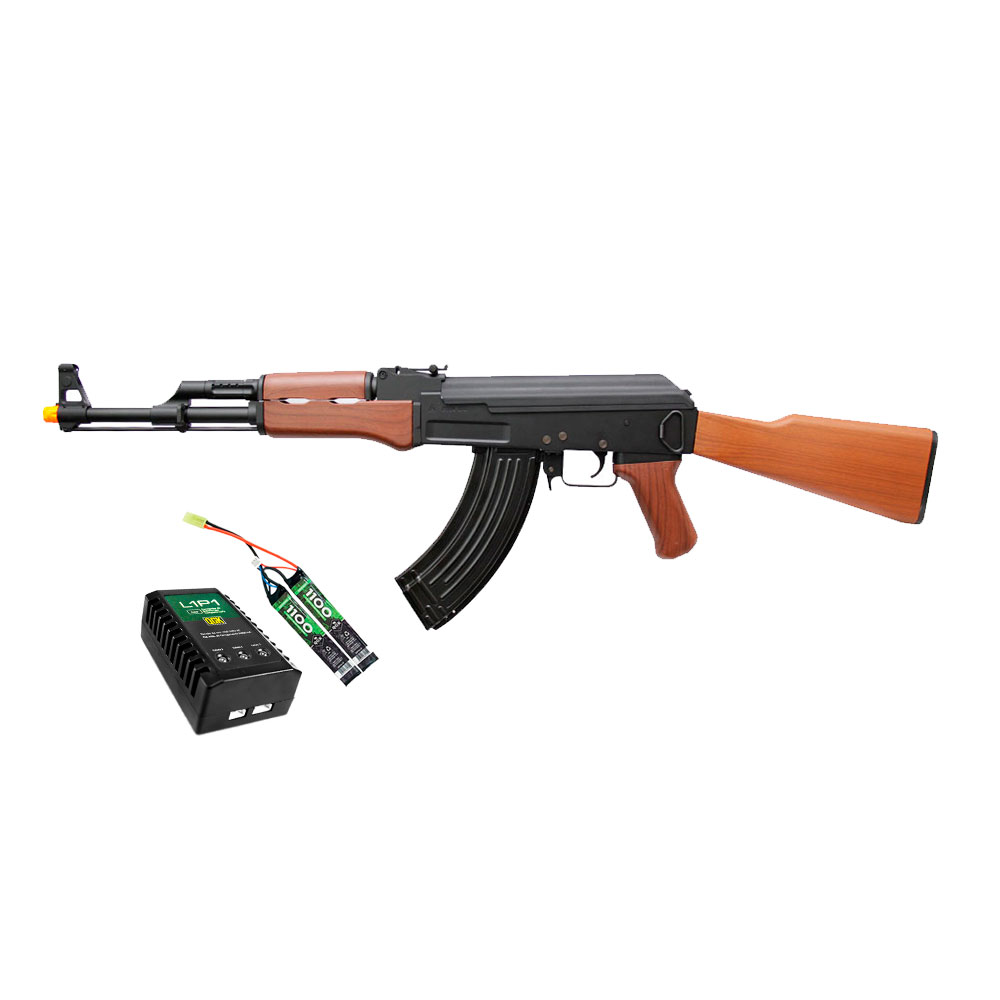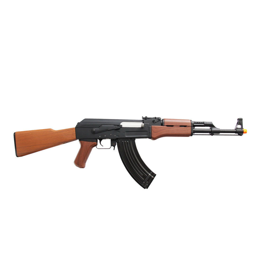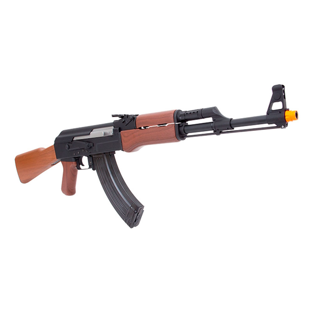 Rifle Elétrico SRC SR-47 construído em metal, com somente coronha, handguard e handgrip em polímero de alta resistência. Uma réplica do rifle AK-47, Kalashnikov criado em 1947 por Mikhail Kalashnikov e produzido na União Soviética pela IZH.