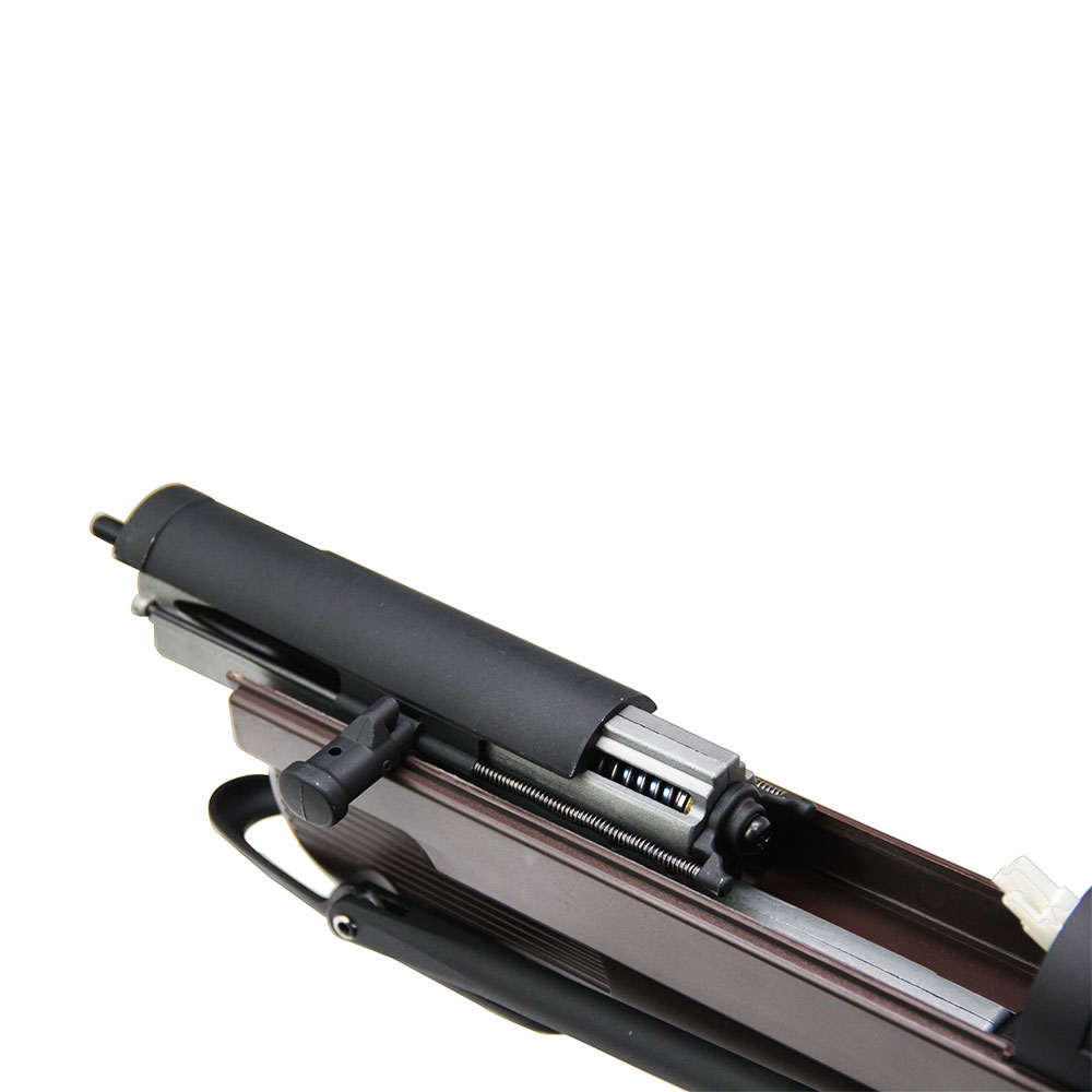 Sistema integrado hop-up, mecanismo que faz com que ao disparar, a munição saia "girando" para cima, proporcionando maior alcance e desempenho em tiros de longa distância.