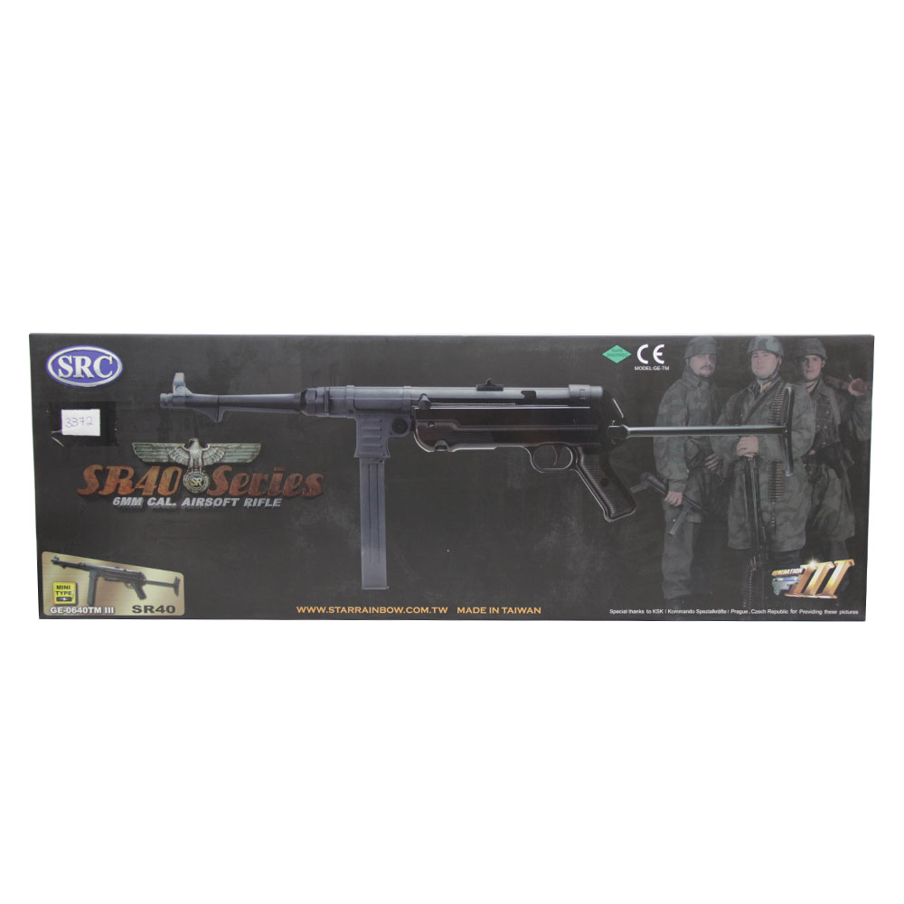 Rifle Airsoft SRC SR-40 construído inteiramente em metal. Réplica do Rifle MP40 utilizado pelo exército alemão na Segunda Guerra Mundial.