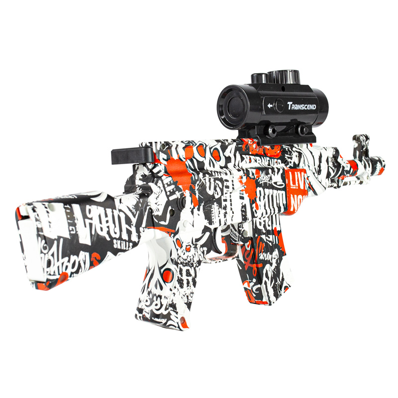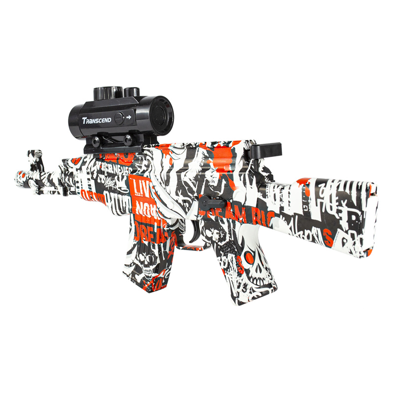 Esse Rifle AKM tem ação por mola e alimentação por bateria. Dispara munições de gel que são compostas 90% por água. Quando a bolinha é ejetada, ela se quebra ao contato com um obstáculo, formando pequenos fragmentos. Quando secar ela desaparece completamente. Não mancha a roupa e não causa dano a pessoas e objetos. As bolinhas são biodegradáveis, não tóxicas e sem cheiro.