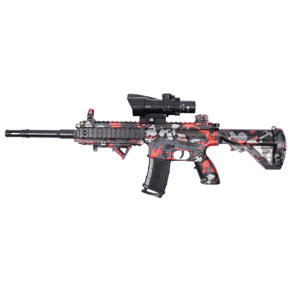 RIFLE GEL GUN CT556 CAMUFLADO PRETO E VERMELHO + 10 MOL ORBEEZ