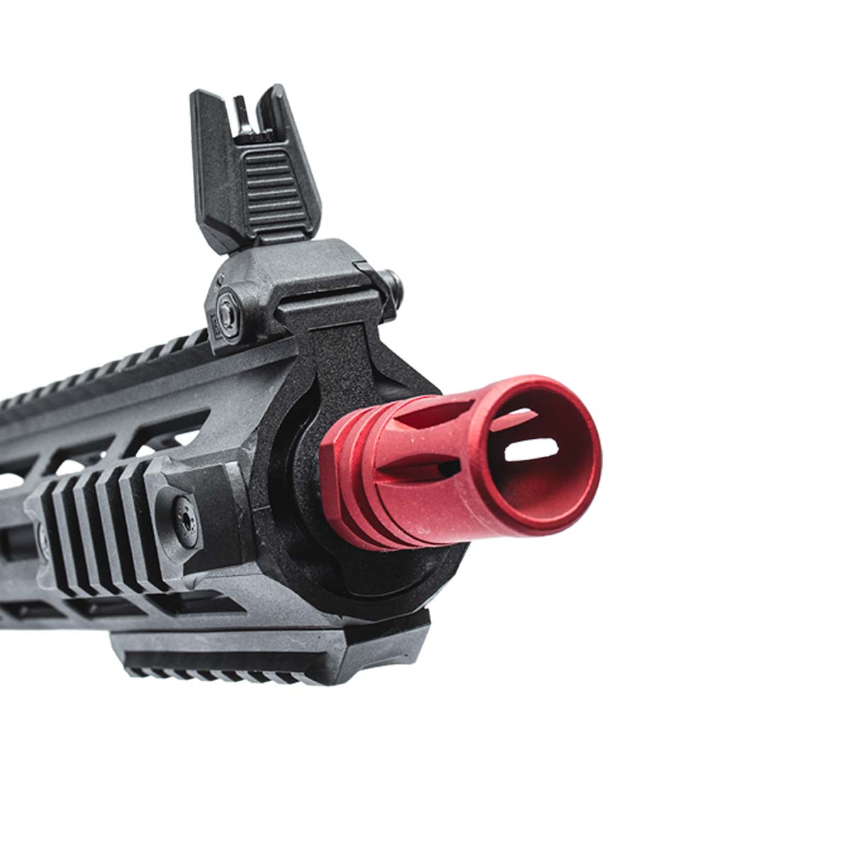 O gatilho conta com ajuste de sensibilidade em 5 níveis, permitindo configurar o ponto de disparo de acordo com o estilo de jogo, desde respostas rápidas para CQB até controle refinado para jogos táticos. O freio ativo eletrônico melhora o controle do conjunto mecânico, resultando em disparos mais consistentes e precisos.