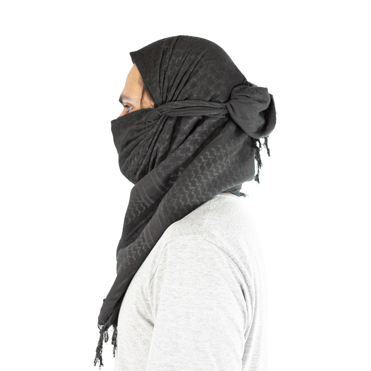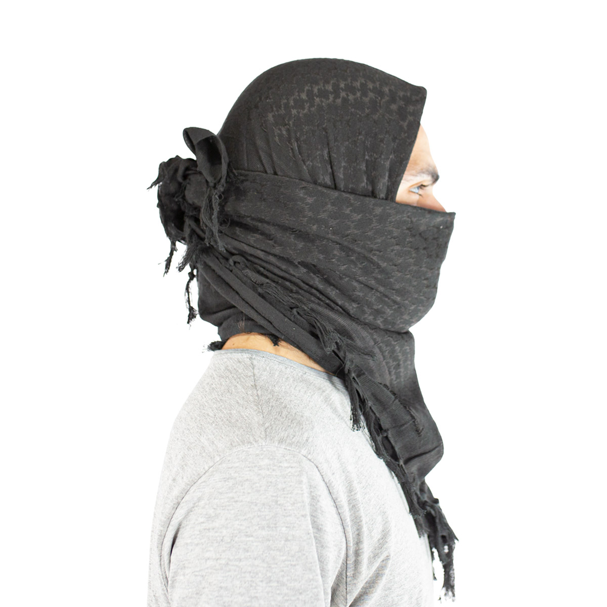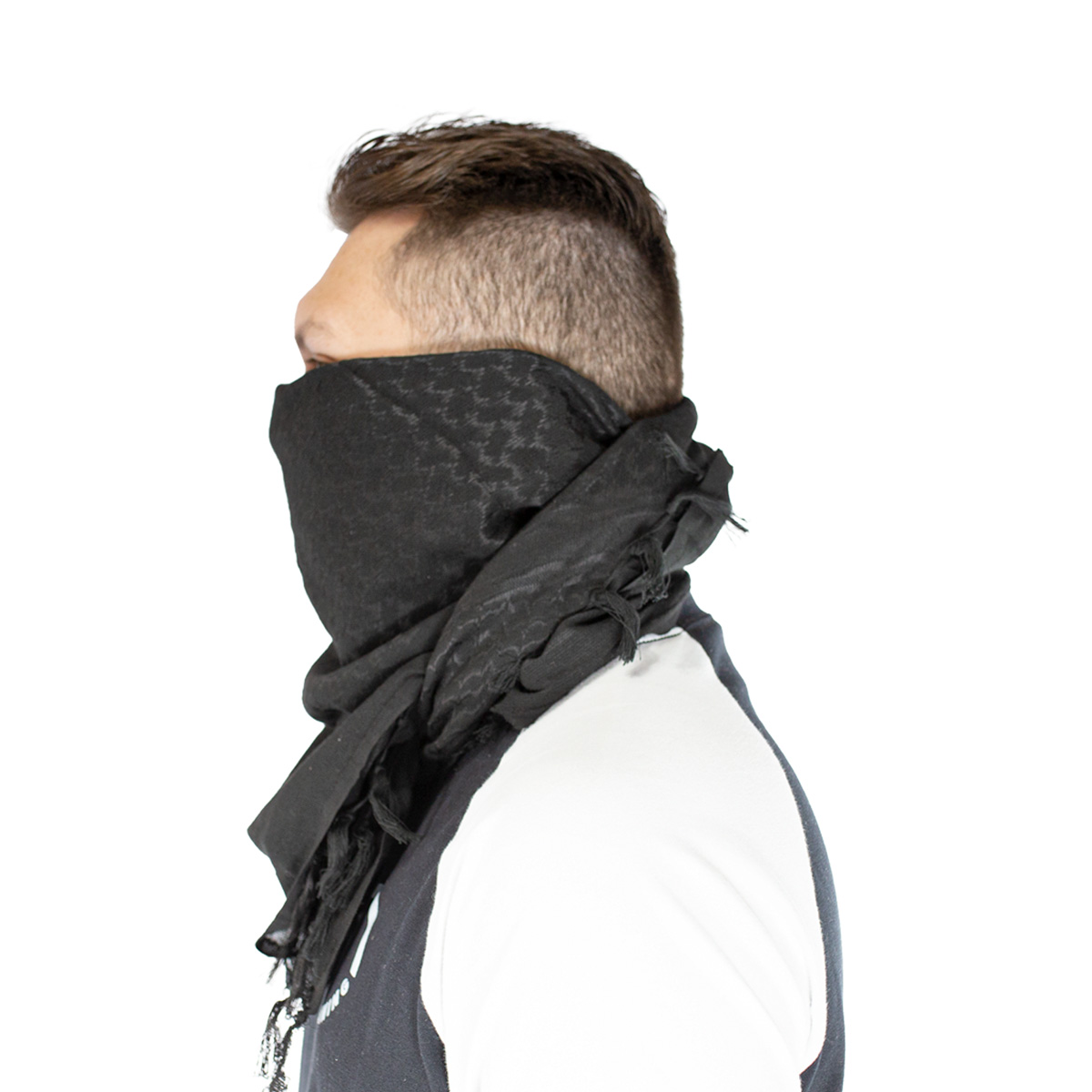 Lenço Shemagh na cor preta , fabricado em Poliéster e algodão o lenço shemagh pode ser usado como cachecol, mascara, bandana, echarpe entre outras utilidades, adquira agora o seu Shemag aqui na Loja da Carabina.