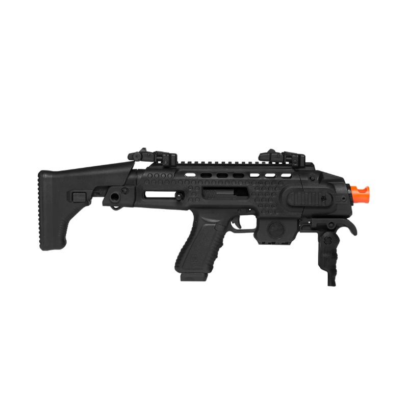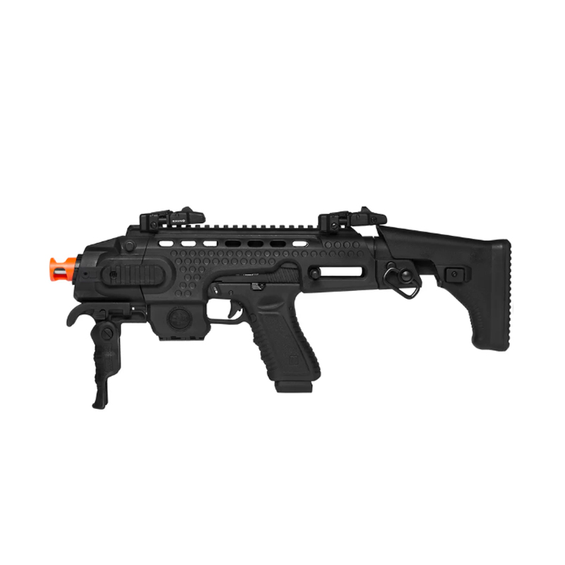 Seu conversor é removível, permitindo somente o uso da pistola ou para uso com outras pistolas. É compátivel com Pistola Glock G17, G18 e APS Action Combat.