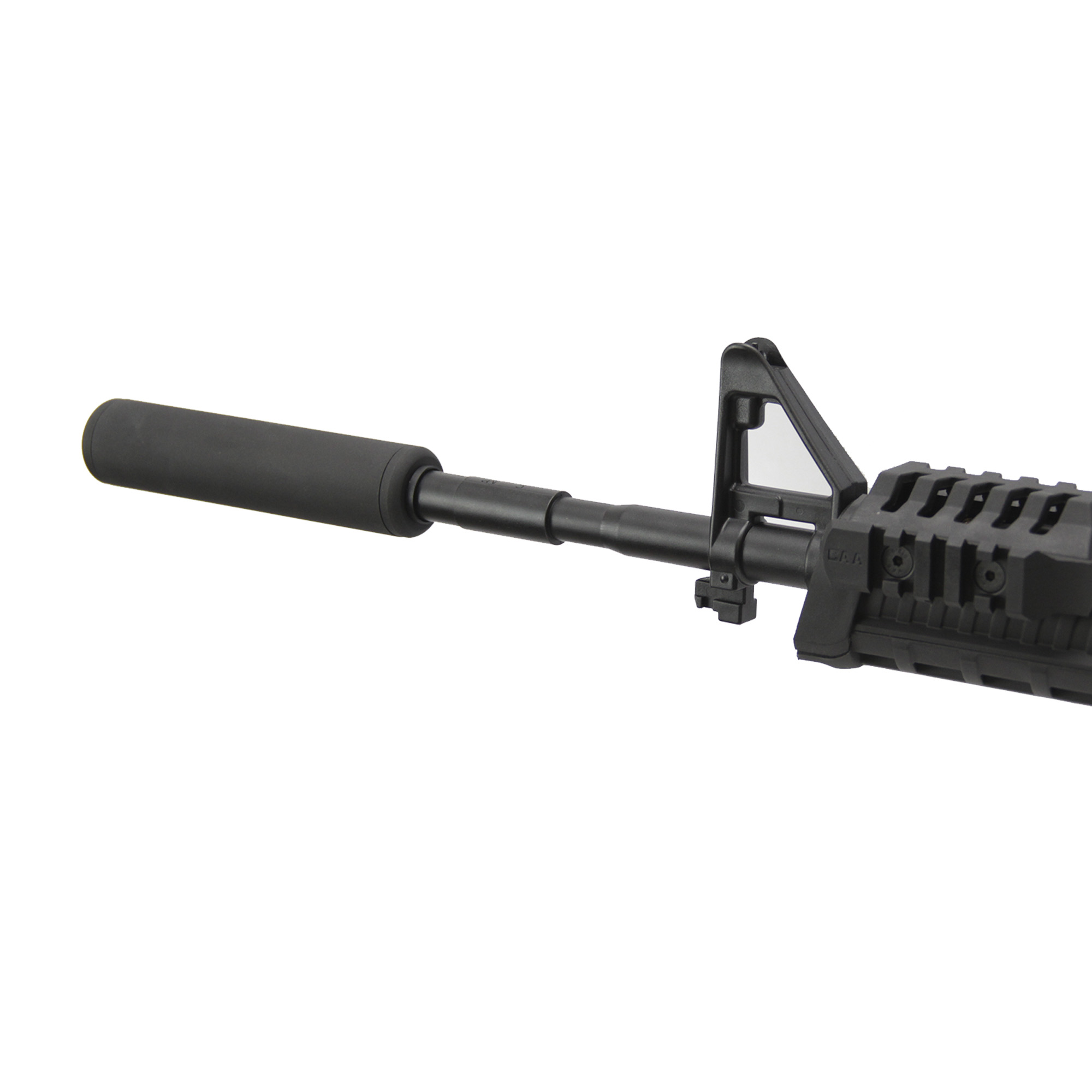 Protege cano de precisão mais longo que a arma. Diminui o som no momento do disparo além de deixar o design da sua Airsoft mais robusto.