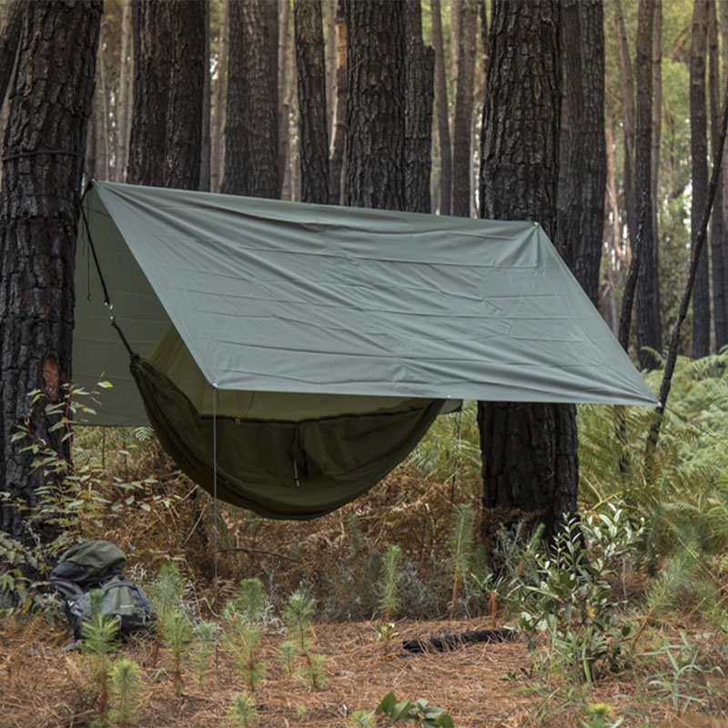 Leve e compacto é ideal para proteção de rede de descanso ou barraca contra chuva ou sol.