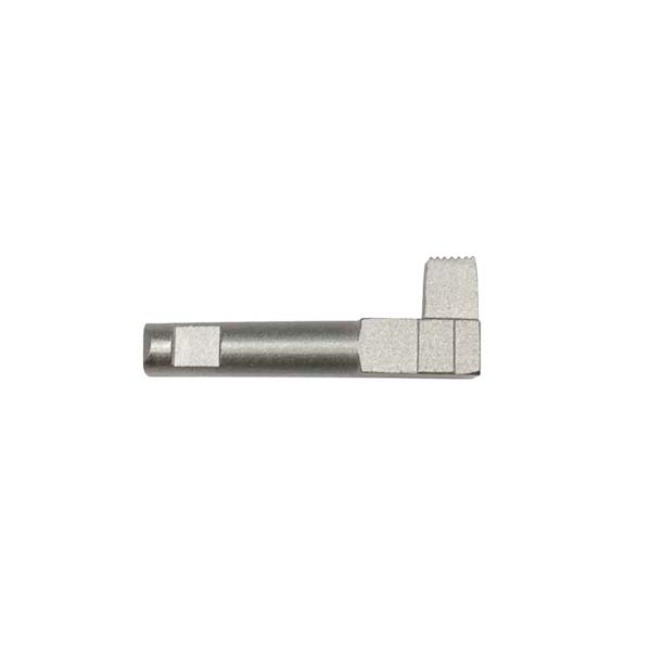 Trava da guia de mola fabricada em aço inox pela Airpress BR, uma peça reforçada feita para substituir a original, oferecendo maior durabilidade e resistência ao conjunto interno da sua Sniper Airsoft.